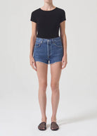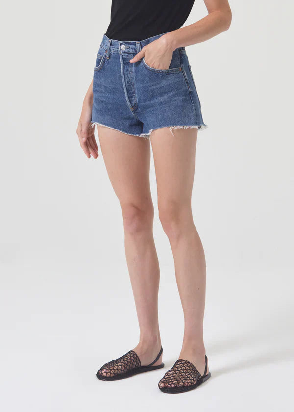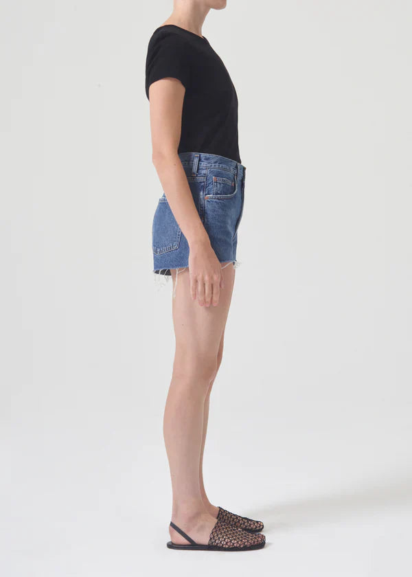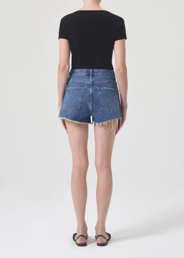 Designed with the perfect vintage short in mind. Featuring a contoured fit to the body to accentuate your true waist hitting right at the hip. The subtle curved and raw hem make the Mila your perfect summer staple.