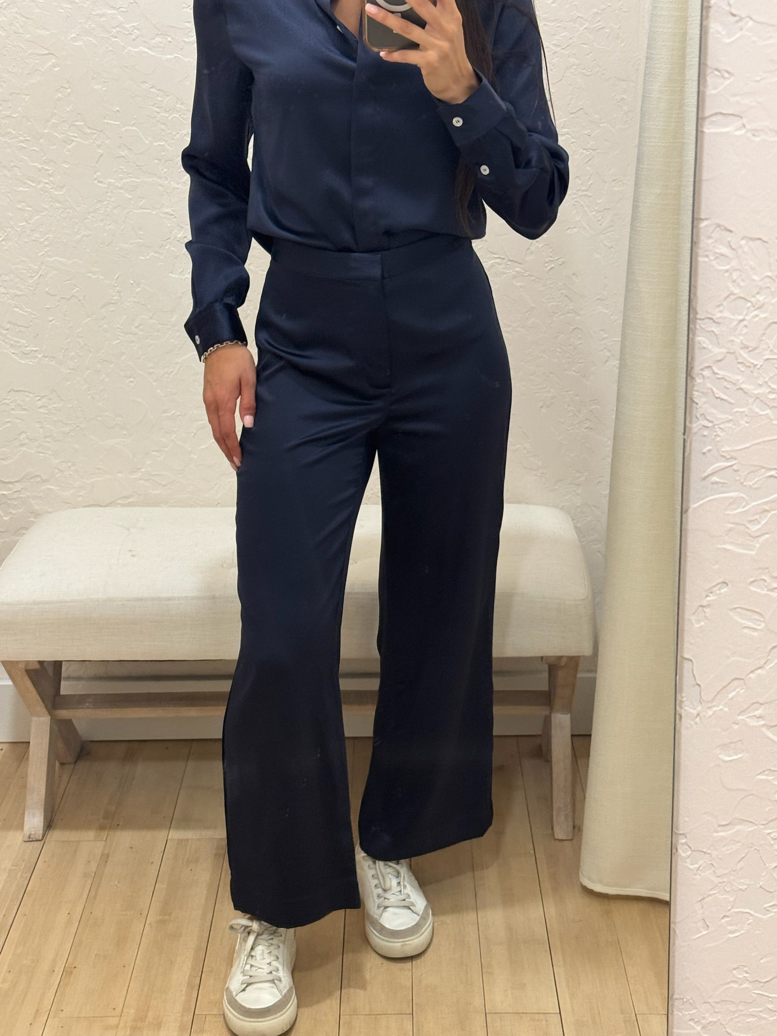 The wear-with-anything silk pant. Designed for a relaxed fit with a wide-leg and slightly cropped length.