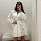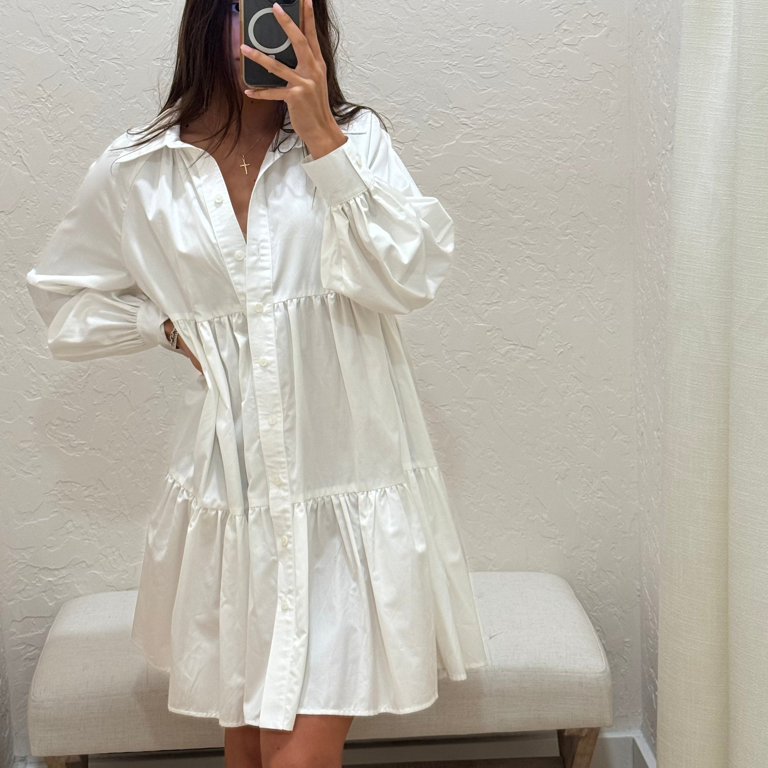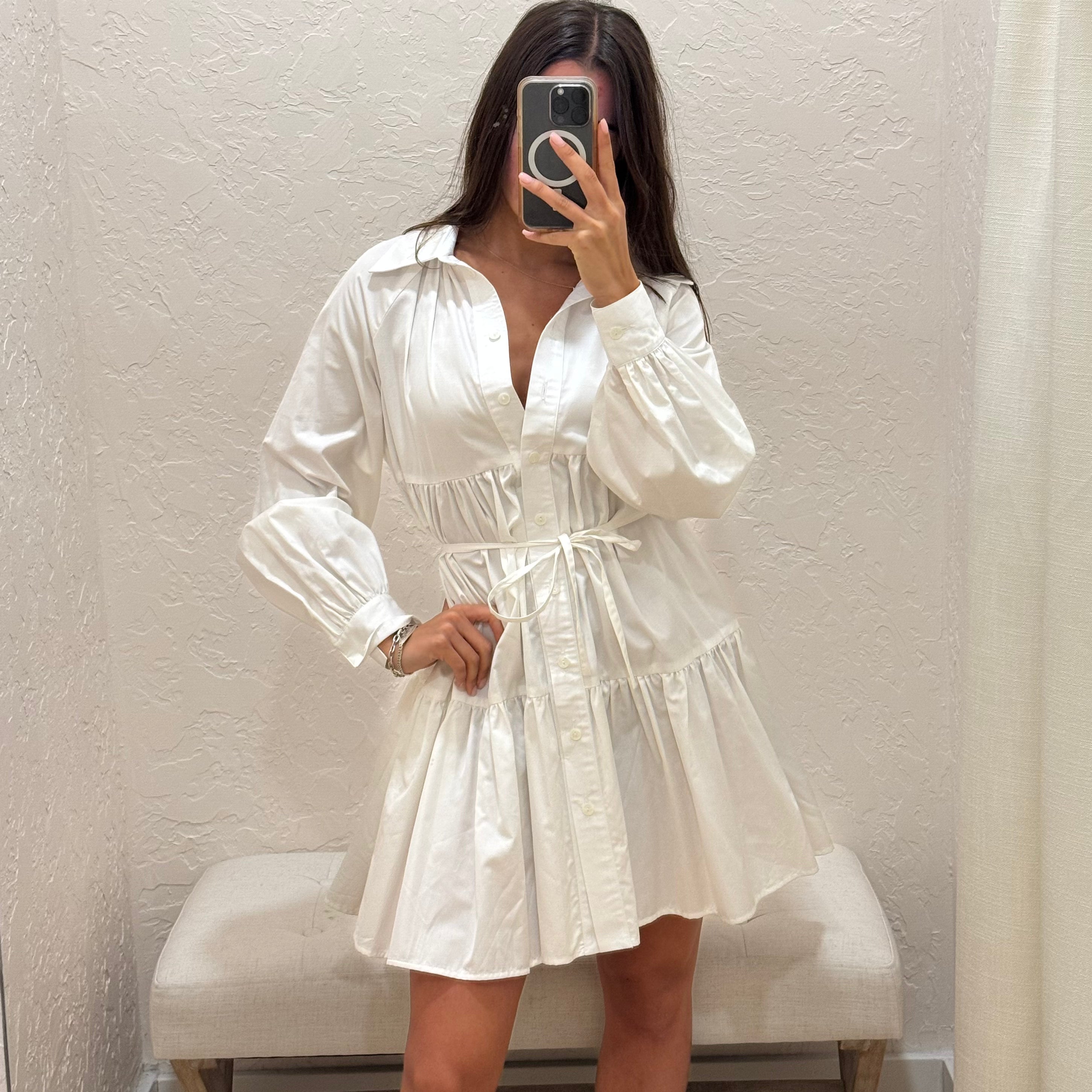 We love the classic look of this collared button front mini dress. Throw your favorite sweater over your shoulders for a perfectly preppy everyday look.