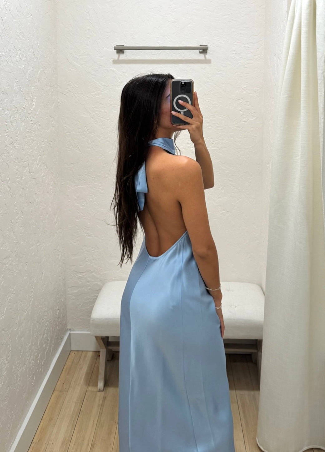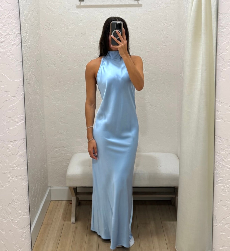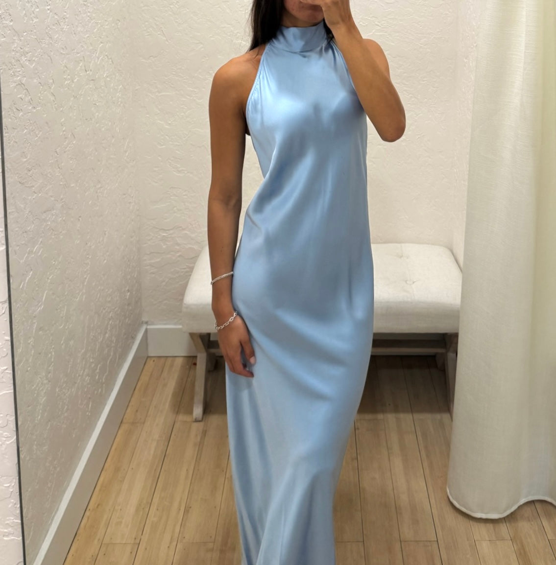 The perfect fit for your next big occasion. Cut on the bias to fall against your body in the most flattering way, with a luxurious neck tie.