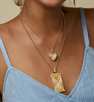 This necklace is part of The Lovers collection. Gli Amanti represents relationships and choices. Love comes in many forms. Like two peacocks, symbols of beauty, confidence, and protection, gazing adoringly at one another on a lush landscape. Choices frame them, and balance is paramount for harmony.