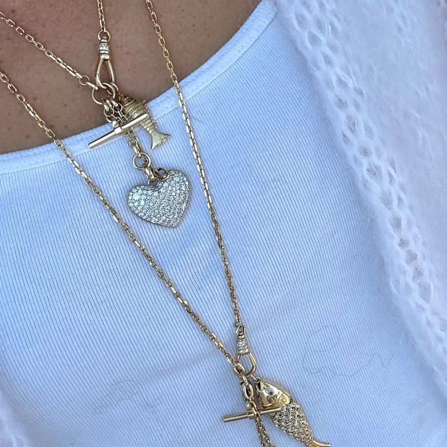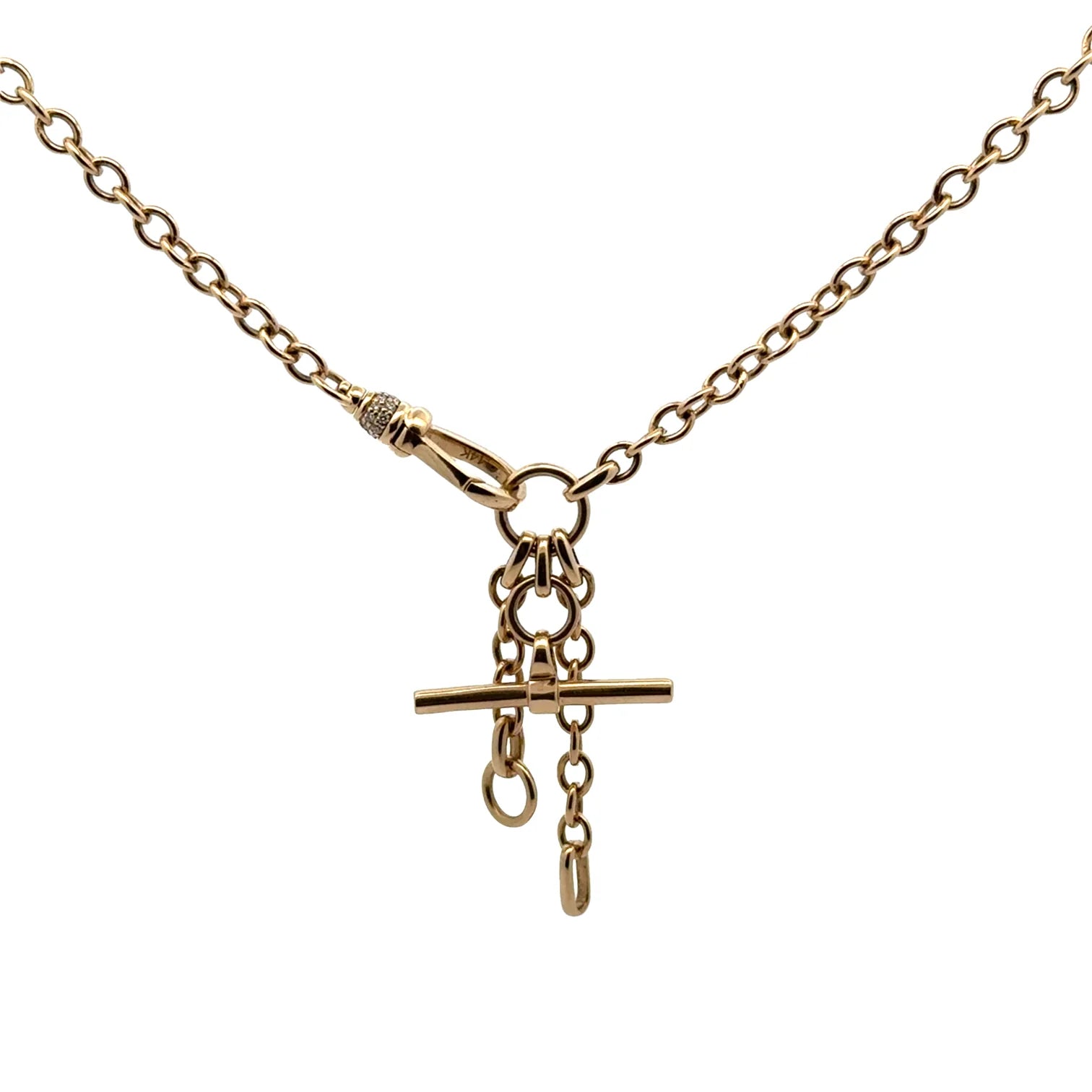 14K yellow gold chain with front facing diamond clasp and toggle. Made in Italy.