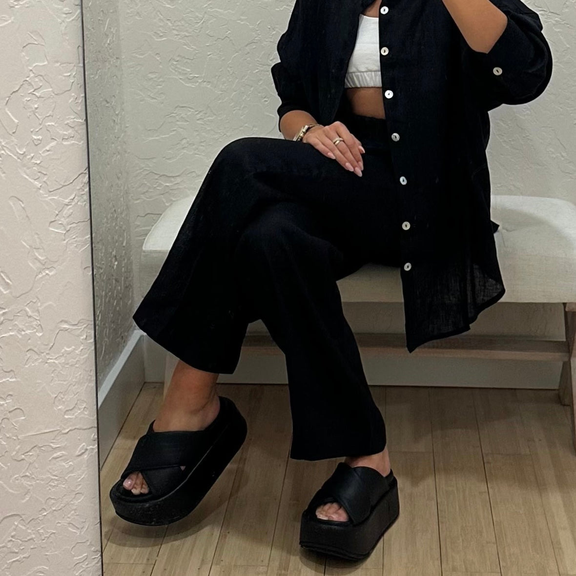 Cozy, comfy, chic linen pants for lounging or running errands. Pair it with The Paulie Shirt for a perfect matching set.