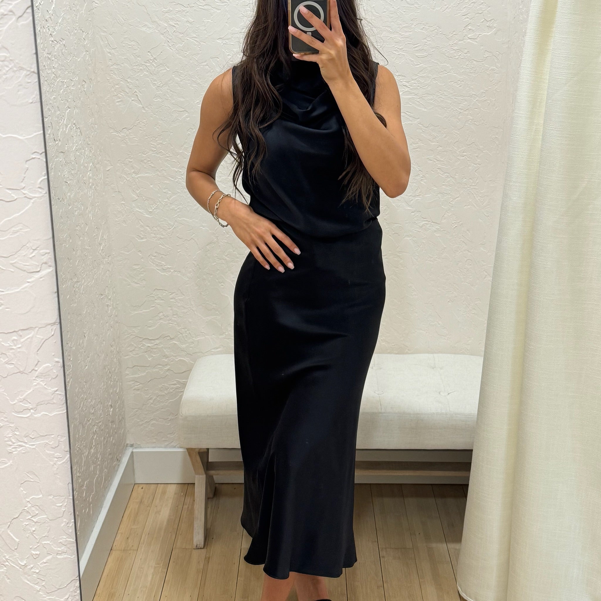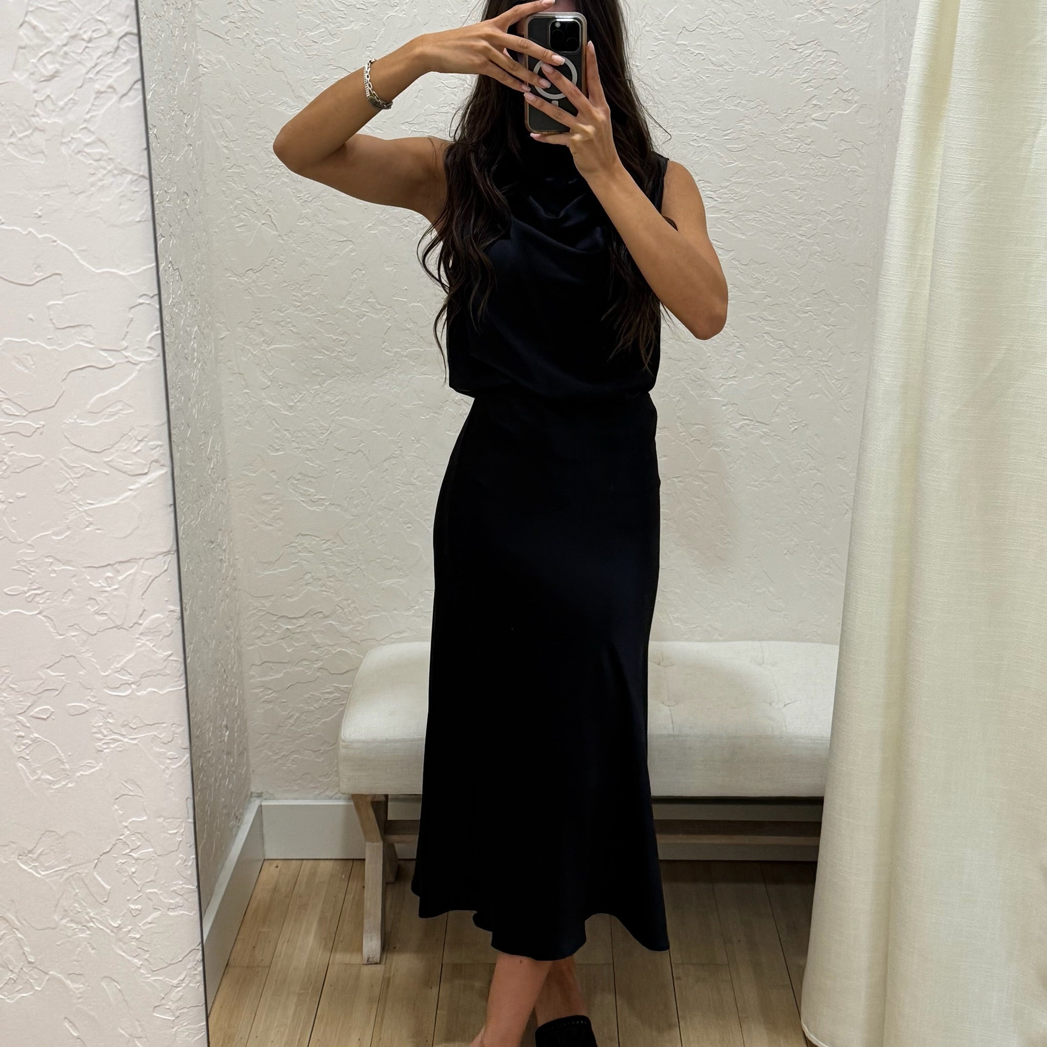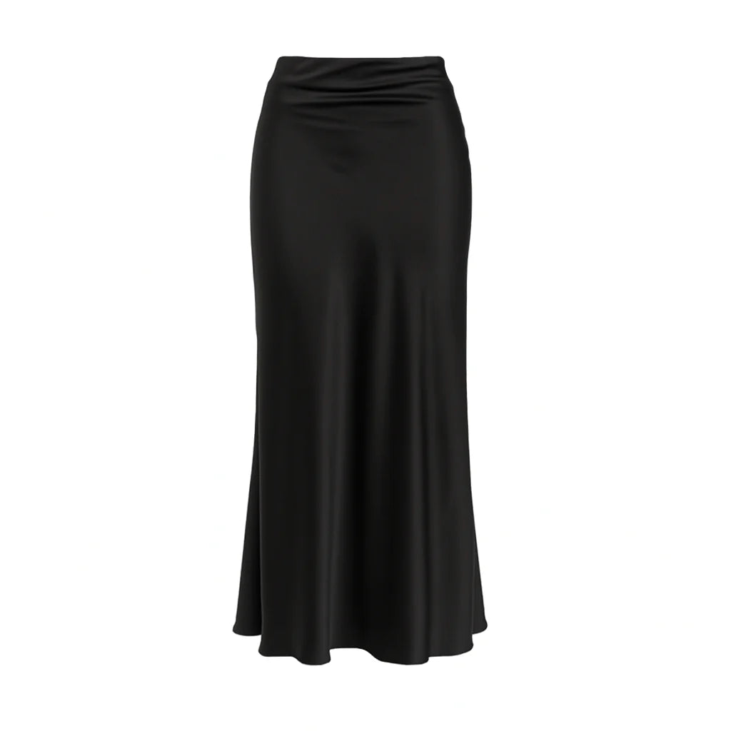 Heavy Silk Midi Skirt - Black