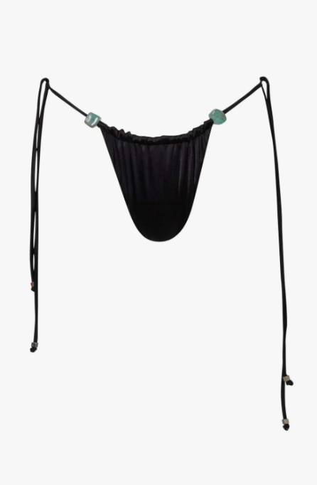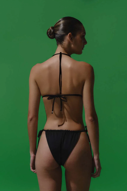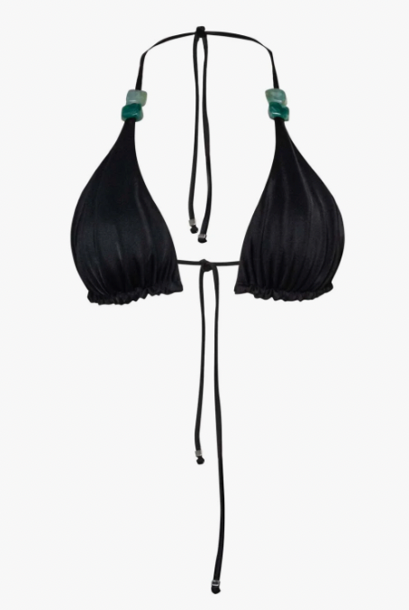 Introducing the Kaia Bikini in Black – a triangle bikini top with adjustable straps and embellishments. Designed without underwire, it features padding and a fully lined construction for comfort and a secure fit.