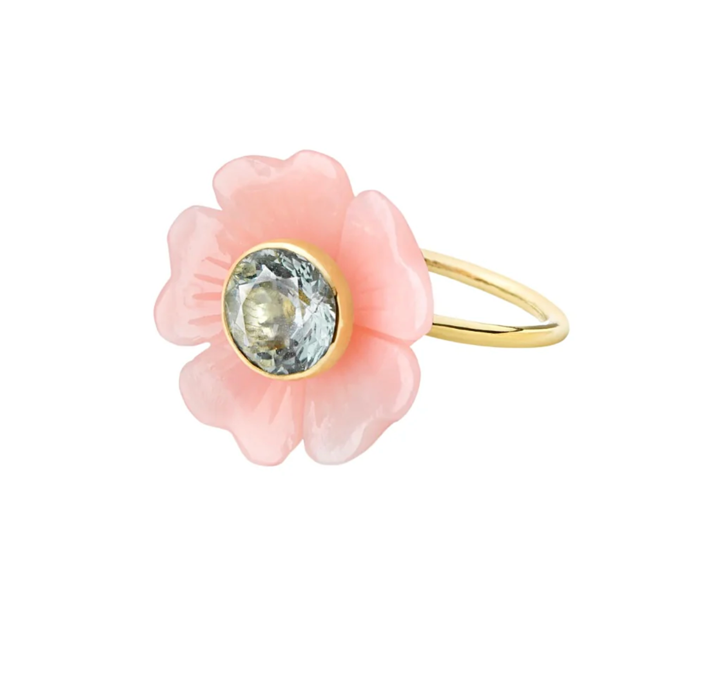The flower on this iconic Sophie Joanne ring is hand-carved from pink opal by an expert artisan, using an age-old, wood-carving technique. Pink Opal clears and calms the heart, brings a sense of peace, and allows to discharge stress.