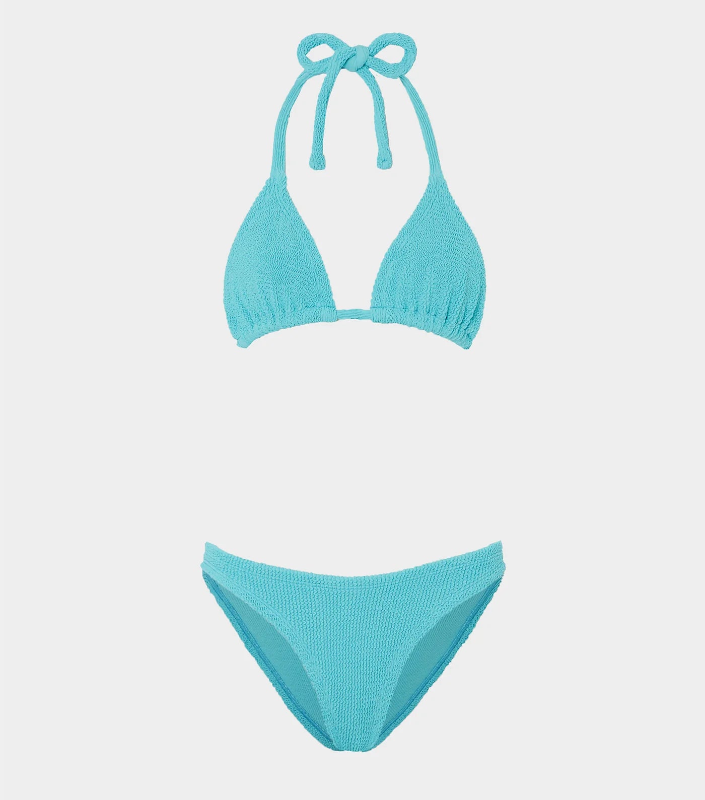 A grown-up take on your classic triangle bikini, Tammy has regular briefs and wider ties on the top for more support. Elevated, understated, and undeniably chic. Meet your new staple.