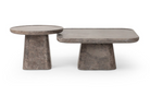 Ground your living space with a coffee table set — one larger square and one smaller round — made from grey-finished marble.